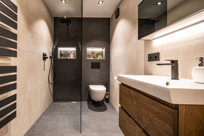 Warme Erdtöne Kleine BadezimmerVon c1418mw201925. Januar 2024 Hersteller: Repabad, Mobiltessino, Dornbracht
